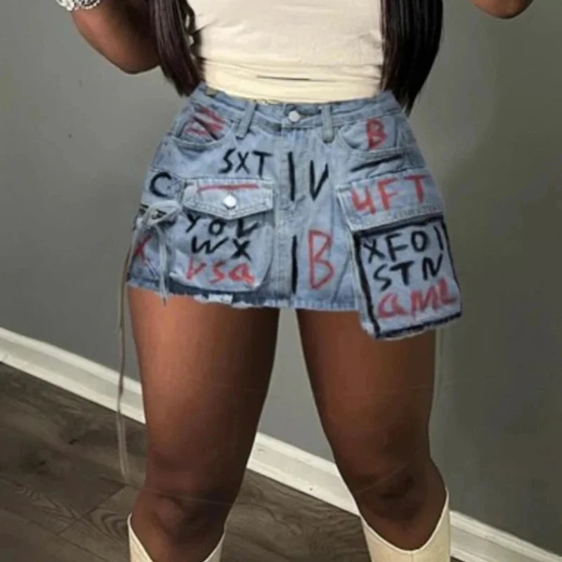 Retro Lettered Mini Skirts