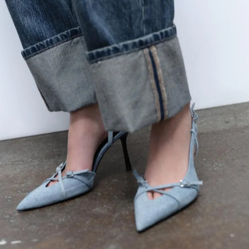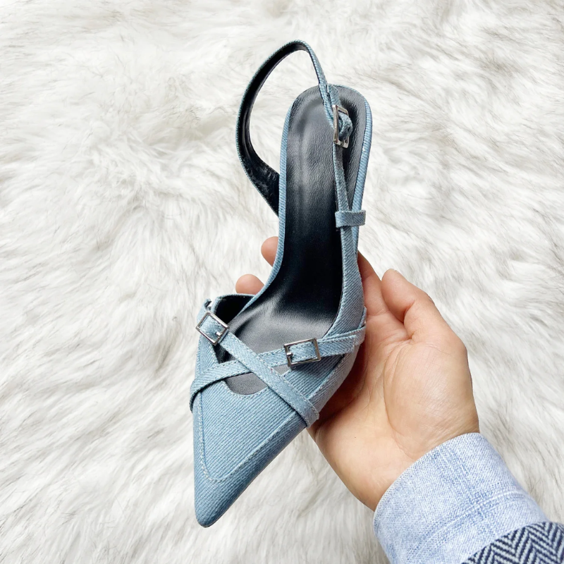 Tacones de mezclilla con correa trasera Carmen